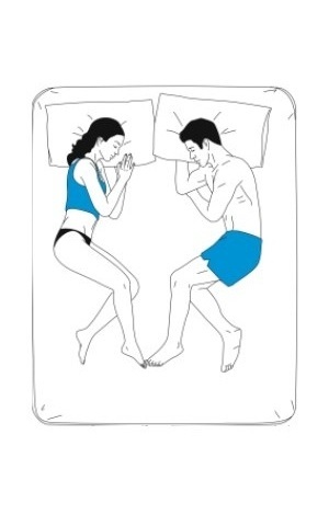 Anda berdua tidur menghadap satu sama lain. Salah satu kaki biasanya saling menyentuh.