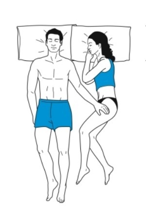 Artinya: Anda merupakan pasangan yang realistis dan menyukai batasan. Umumnya pasangan ini memiliki banyak perbedaan, namun saling menghargai. Pasangan ini juga menyadari perlunya waktu personal walau sudah menikah. Pasangan ini tak banyak menuntut dan lebih realistis dalam menjalani hubungannya. Tapi ada juga yang menyebutkan gaya tidur seperti ini menandakan adanya 'jarak' atau hubungan yang kurang harmonis.